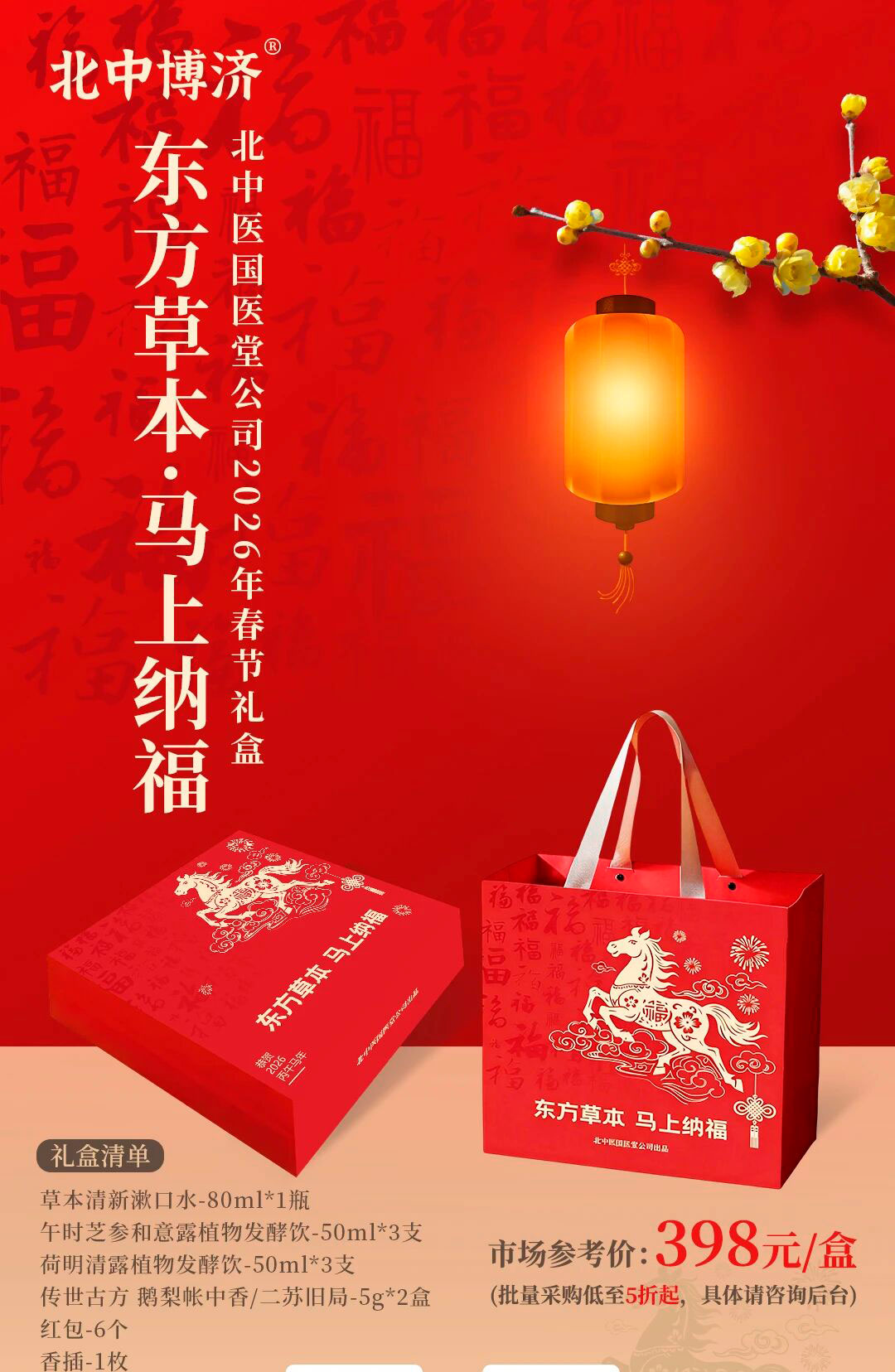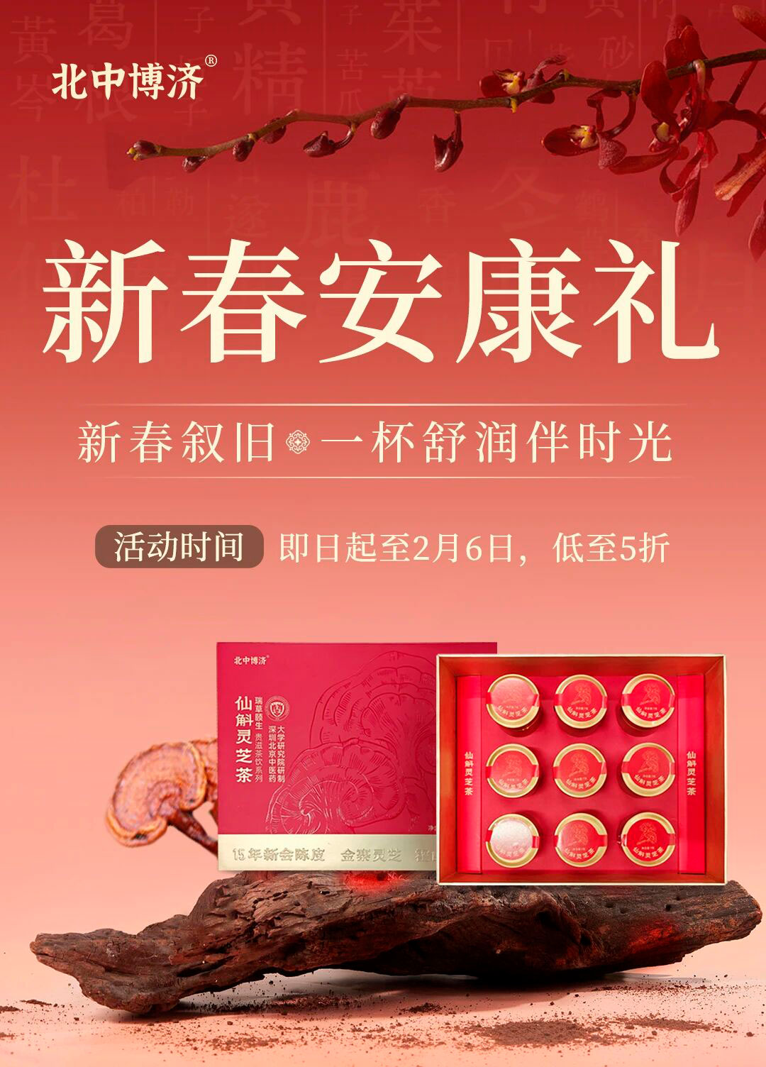 北中博济以东方智慧为底,为亲友与伙伴早早备好了这份新春安康礼——甄选仙斛灵芝茶、五臓甄研·时季茶笺代用茶、黄金植萃固体饮料以及东方草本・马上纳福礼盒四款好物,限时 5 折特惠开启!唯愿让这份满载心意的安康礼,伴亲友岁岁常安,助企业礼传温情。