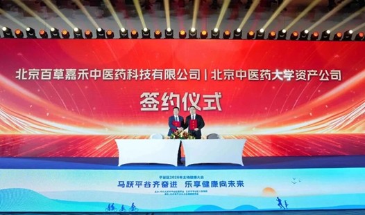 北京北中资产管理有限公司与北京百草嘉禾中医药科技有限公司在平谷区2026年主动健康大会上签署产学研战略合作协议