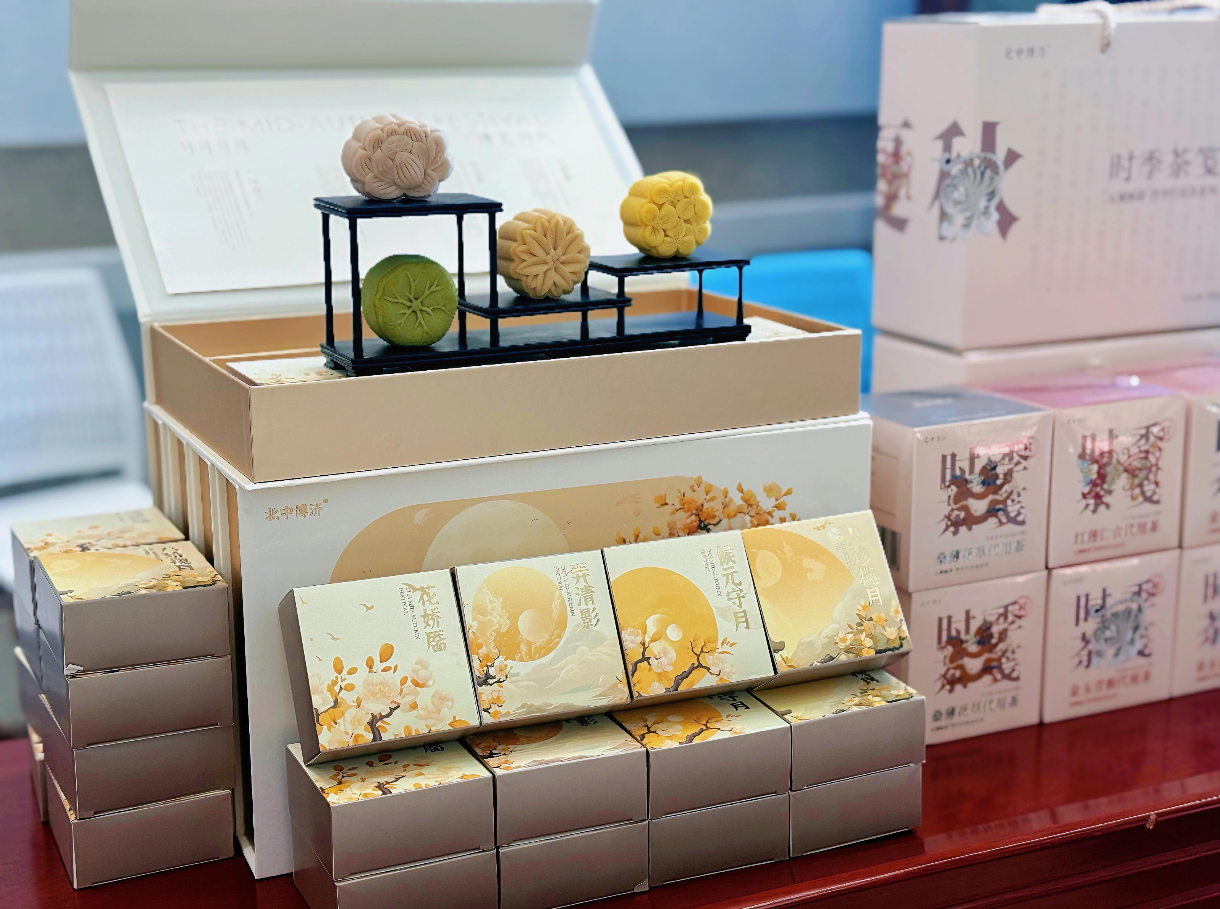 在展示区,北中资管集中呈现了多款凝聚校园记忆的文化创意产品和具备鲜明中医药特色的健康产品,吸引了众多校友驻足欣赏。这些饱含青春回忆的精美文创好物和中医药科技成果转化产品不仅唤起了校友对求学时光的美好追忆,也展现了公司在挖掘校园文化、服务学校事业的阶段性成果。