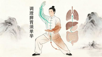 练习八段锦之“调理脾胃须单举”:一手上举,一手下按,交替进行,能有效按摩脏腑,调节气机升降,是调和肝脾的经典动作。
